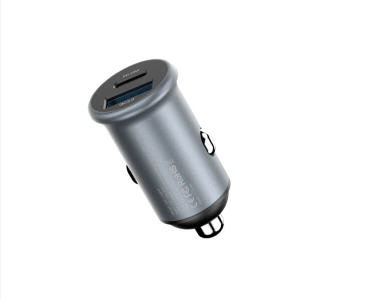 This car charger features a compact design, making it an ideal travel accessory. It fits perfectly in any vehicle, and its lightweight build ensures easy portability.