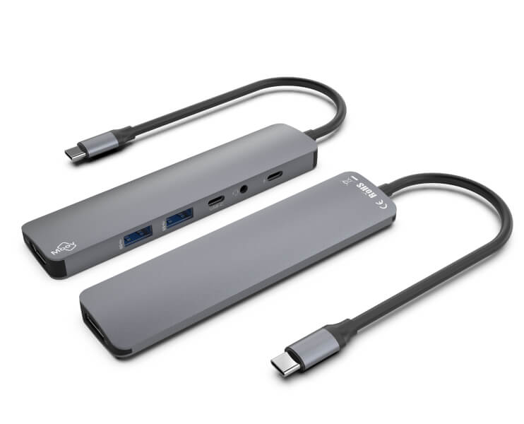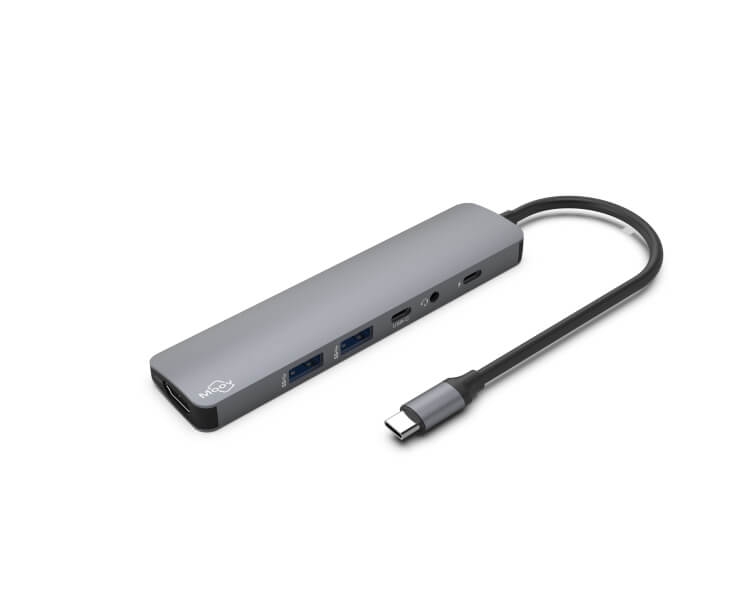 Enhance your MacBook or iPad experience with this sleek and versatile USB-C 6-in-1 Multiport Hub. Its ultra-compact and lightweight design makes it perfect for on-the-go connectivity. With High Speed Power Delivery, you can enjoy pass-through charging at an impressive rate of up to 100W. Seamlessly mirror your MacBook or iPad to displays, TVs, and projectors using the HDMI port, and connect your headphones effortlessly through the 3.5mm audio jack. Plus, with an additional USB-C port and two USB-A ports, syncing your devices has never been easier.