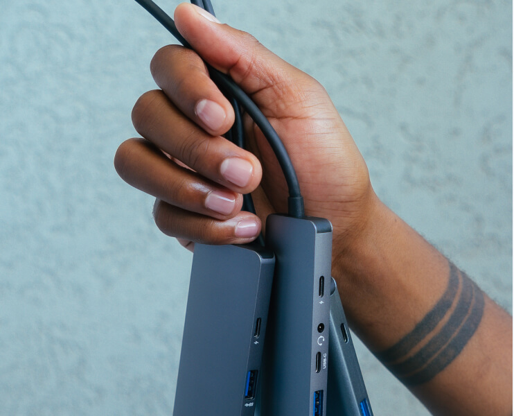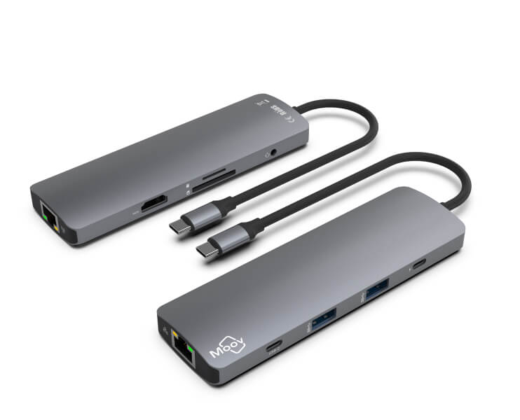 Enhance your MacBook/iPad with this compact USB-C 9-in-1 Multiport Hub. It offers up to 100W pass-through charging and allows you to mirror displays via HDMI. Connect headphones through the 3.5mm audio jack, and sync devices using 1 USB-C and 2 USB-A ports. Transfer files easily with SD and Micro SD slots, plus enjoy reliable Ethernet connectivity with the RJ45 port.
